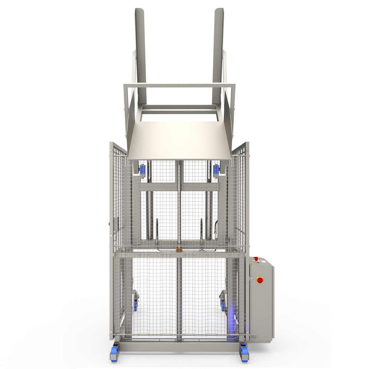 Ο ανοξείδωτος ανατροπέας με ανύψωση GLT κινείται από δύο ηλεκτρο-υδραυλικές αντλίες μονού εμβόλου που χρησιμοποιεί τη βαρύτητα για το χαμήλωμα. Έτσι, είναι πολύ ασφαλές γιατί μειώνει σημαντικά τον κίνδυνο να υποστούν σωματική βλάβη τα κινούμενα μέρη του.
