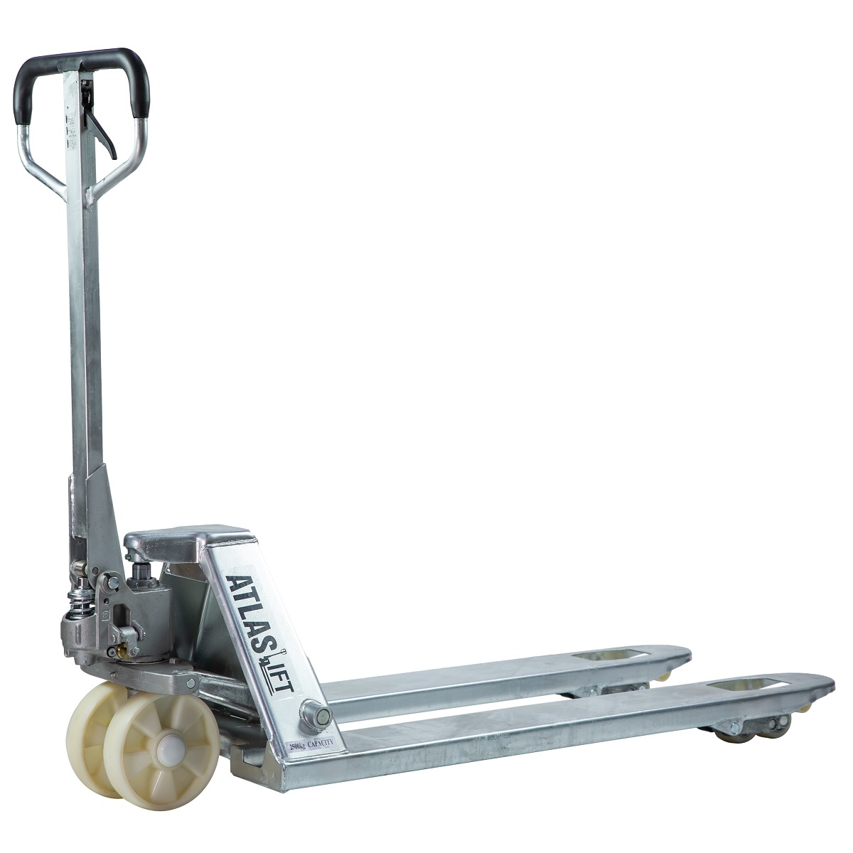 Το γαλβανισμένο παλετοφόρο πεζού χειριστή BFG 2.5T της εταιρίας Atlas Lift προσφέρει προστασία για αρκετά μεγαλύτερο χρονικό διάστημα σε σχέση με τα απλά βαμμένα παλετοφόρα και αποτελεί μια οικονομική, ενναλλακτική λύση έναντι του πλήρως ανοξείδωτου παλετοφόρου.