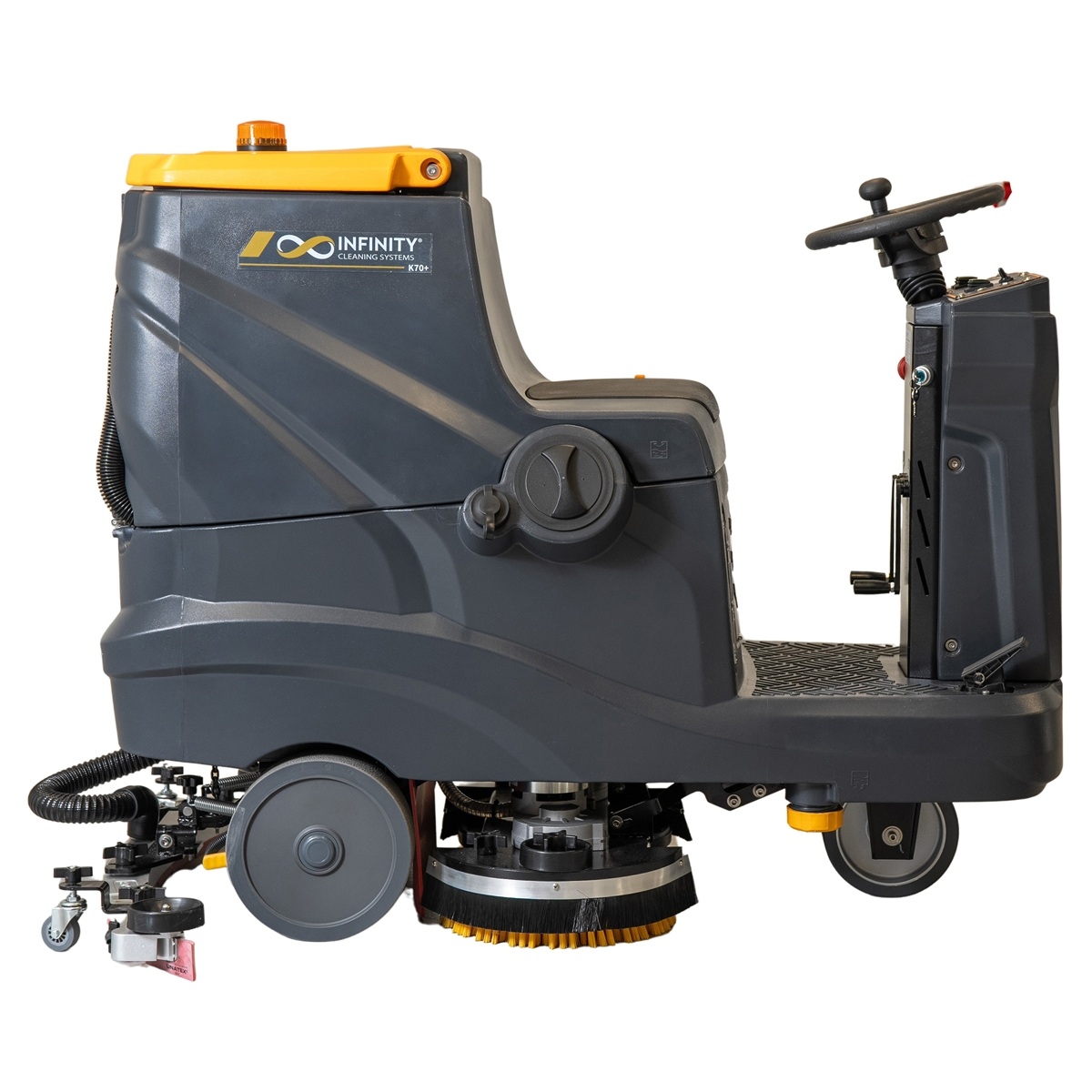 Η INFINITY K70+ είναι μια ισχυρή και ευέλικτη επικαθήμενη μηχανή καθαρισμού δαπέδου με αυτονομία έως 3 ώρες ανά φόρτιση.
