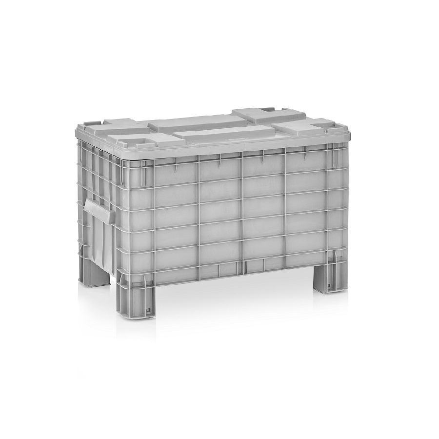 Συμπαγές πλαστικό παλετοκιβώτιο 270L με πόδια 100×64×67cm Γκρι